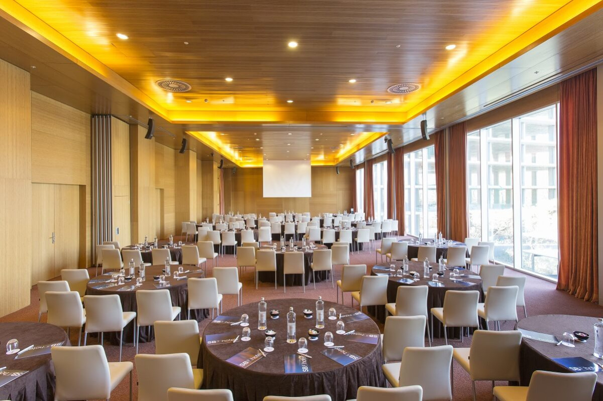 SB BCN Events 4* Sup A pocos minutos del aeropuerto y del centro de Barcelona, es el hotel perfecto para grandes convenciones y eventos corporativos. Cuenta con más de 300 habitaciones y hasta 13 salas panelables, muchas con acceso al exterior y sin columnas, ideales para presentaciones de productos, incluso de vehículos. Su zona de restauración, ubicada junto a las salas y con acceso a una gran terraza ajardinada, lo convierte en el hotel ideal para grandes eventos.